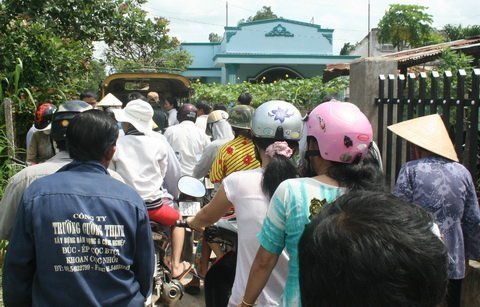 | Đông đảo bà con tiễn đưa 2 cháu |