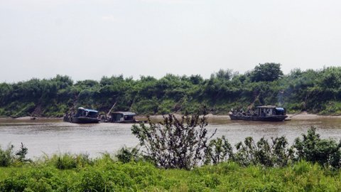 Đội tàu cát tặc hoành hành tại khúc sông Đuống của các xã Lệ Chi, Trung Mầu, Phù Đổng, Kim Sơn… vài năm nay.