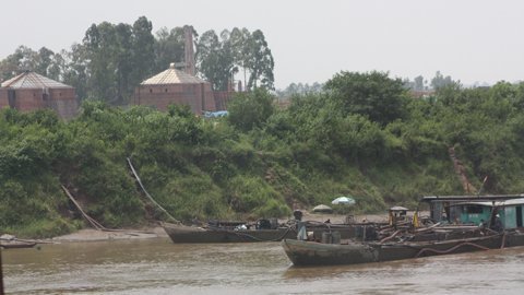 Vài ba chục tàu hút cát cùng neo đậu dọc sông, mật độ dày đặc, mỗi chiếc neo cách nhau chừng vài chục mét. Tất cả các tàu đều chạy máy dầu, tiếng máy khô khốc rầm rĩ cả một góc sông.