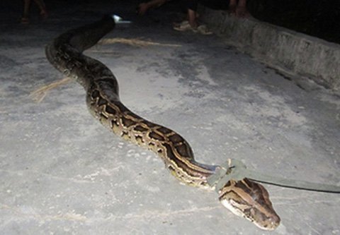 Con trăn anh Học bắt được vào chiều ngày 1/7 (Ảnh: Kienthuc.vn) |