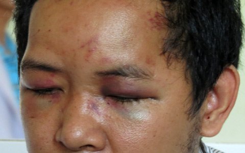 Đến tháng 3 là đến hạn phải trả hết tiền gốc nhưng anh chưa có để trả. Chiều ngày 25/4, khi anh đang ngồi làm việc tại cơ quan thì đối tượng này đã xông vào to tiếng, hành hung anh Lam đòi nợ ngay tại ngân hàng.