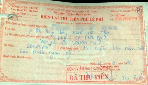 | Hóa đơn nằm viện 4,5 ngày của cháu V. lên đến gần 21 triệu đồng. Trong khi đó, người nhà bệnh nhân không thỏa mãn, hài lòng với chất lượng dịch vụ mà bệnh viện cung cấp |