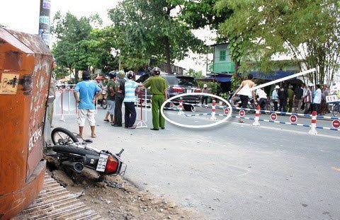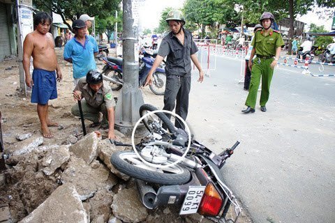 Hai người bị thương được xác định là Lý Hán Tài (35 tuổi ngụ Q.6) và Lê Quang Điểu (32 tuổi, công nhân thi công vỉa hè). Chiếc xe gắn máy anh Tài đang đi bị đập bể lốc máy, hư hỏng khá nặng.