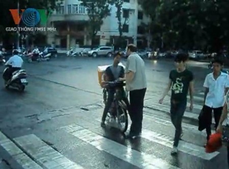 Người đàn ông ngoại quốc kiên nhẫn đứng giữa dòng người ngăn các xe đi ngược chiều trước thái độ thờ ơ của người đứng quanh. Một hình ảnh đẹp khiến nhiều người Việt không khỏi giật mình nhìn lại.