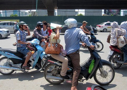 | Do ùn tắc kéo dài trên trục xa lộ Hà Nội trong khi nhánh giữa cầu Rạch Chiếc mới chưa thông xe, nhiều ô tô đã tiếp tục đi vào nhánh biên bên cầu đáng lẽ dành cho xe máy |