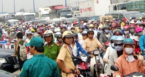 Tại TP.HCM, “biển người” sau môn thi cuối đổ ra đường phố để tới các bến xe khiến giao thông ùn tắc, đặc biệt ở quận Thủ Đức.
