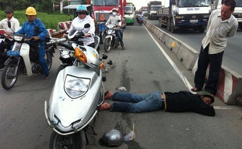 | Người đi đường thờ ơ bỏ mặc nạn nhân bị nạn nằm bất động trên quốc lộ 1A (TPHCM). |