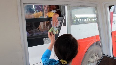 thao tác: nhận vé - thu tiền (đưa tiền lại) - nhập thẻ…
