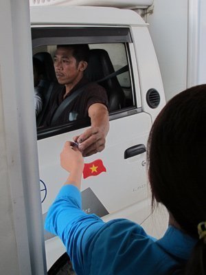 mật độ xe đi qua lớn thì nhân viên thu phí phải luôn tay bận rộn với các