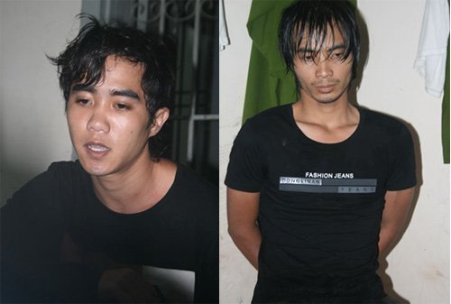 | Hai đối tượng Bách, Thuận tại cơ quan công an |