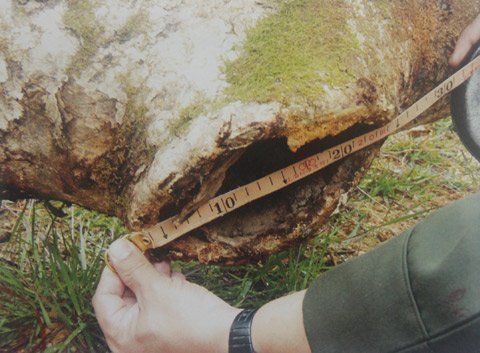 | Khúc gỗ huỳnh đàn thật được đối tượng cấy vào nhánh khô cây sưa vườn (Ảnh do công an cung cấp) |