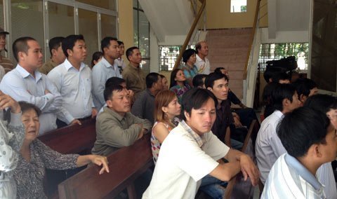| Rất đông người dân tập trung theo dõi phiên tòa |