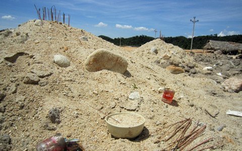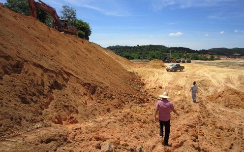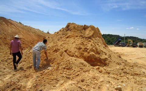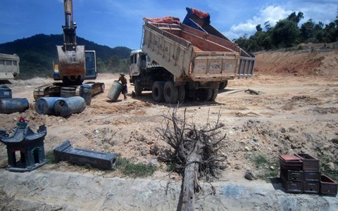 các hố chôn, hiện đang còn một ụ đất lớn có nhiều đất đen. Lực lượng thi công