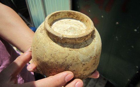 ![]() Hơn 30 chiếc tiểu đã được bốc cất và chôn tạm bên cạnh lán trại thi công. ![]() Số tiểu và cột thiên đài được mua về tiếp để chuẩn bị cất bốc số mới phát hiện. ![]() Có 4 chiếc tiểu chứa “hài cốt” chưa được chôn cất, đang phải phơi nắng. ![]() ![]() Hai trong số nhiều chiếc bát cổ còn nguyên vẹn, hiện vật phát hiện chôn theo trong các điểm phát hiện. ![]() Một chiếc bát được dùng làm bát hương tại điểm chôn cất tạm. ![]() Chiếc bình cổ, một hiện vật tuỳ táng được phát hiện. ![]() |