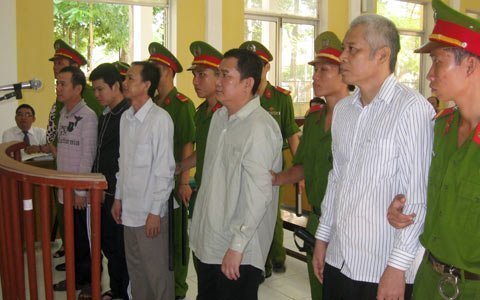 | Các bị cáo trong giờ tòa tuyên án - Ảnh: Quốc Huy |