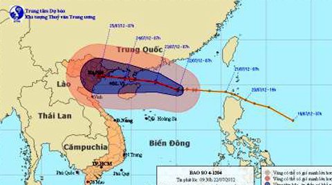 | Chuẩn bị đối phó bão Chiều tối 21/7, Ban chỉ huy phòng chống lụt bão TW đã có công điện yêu cầu các tỉnh ven biển từ Quảng Ninh tới Phú Yên cần thông báo gấp cho tàu thuyền không đi vào và chủ động thoát ra vùng nguy hiểm (được xác định là vùng biển phía Bắc vĩ tuyến 17). Tính đến 6h ngày 22/7, Biên phòng các tỉnh đã phối hợp với chính quyền địa phương, gia đình chủ tàu, thuyền trưởng và các lực lượng thông báo, hướng đẫn cho 33.587 tàu/128.170 lao động đang hoạt động trên biển biết vị trí và hướng di chuyển của bão để chủ động thoát ra khỏi khu vực nguy hiểm. Hiện chưa có thiệt hại về tàu thuyền. Ban chỉ huy phòng chống lụt bão TW cũng yêu cầu các tỉnh ven biển vịnh Bắc Bộ kiểm soát chặt chẽ hoạt động của các tàu đánh cá ven bờ, tàu du lịch và sẵn sàng đối phó với bão di chuyển vào vịnh Bắc Bộ; kiểm tra, rà soát các công trình ven biển, nhất là các công trình đang thi công, công trình đê điều, hồ đập, hầm lò, bến cảng có phương án đối phó với bão. |