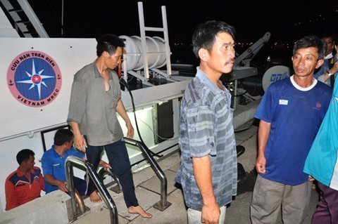 | Tàu cứu nạn Hàng hải Danang MRCC đưa ngư dân trên các tàu bị nạn vào bờ an toàn. |
