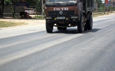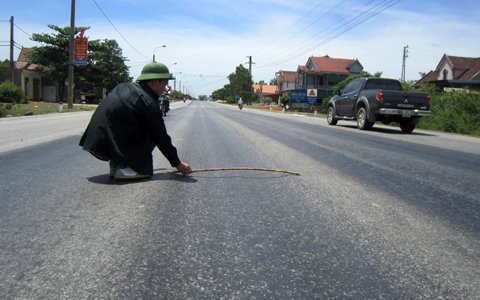| “Lòng chảo” xuất hiện nhiều trên mặt đường. |