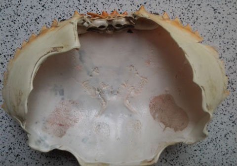 | Bà Đ., cho rằng trên thân cua xuất hiện hình thiếu nữ nhưng thực tế qua kiểm tra, chúng tôi hoàn toàn không phát hiện bất cứ điều gì bất thường |