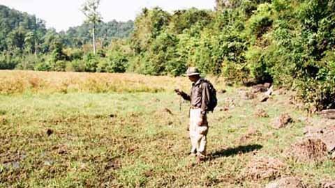 | TS Nguyễn Mạnh Hà - Trung tâm nghiên cứu Tài nguyên và Môi trường những ngày “săn bò tót” tại Vườn quốc gia Cát Tiên. |