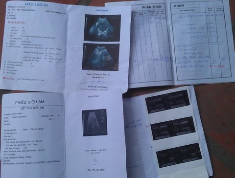 | Phiếu siêu âm của bảo sanh viện Phước Sơn và phòng khám tư của BS Thu |