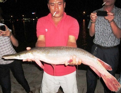 cá sấu, trong miệng mọc 2 hàm răng thưa và nhọn hoắt. Con cá có trọng lượng chừng 5kg.