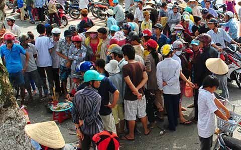 | Hàng trăm người dân vây kín cổng UBND huyện Thới Bình. |
