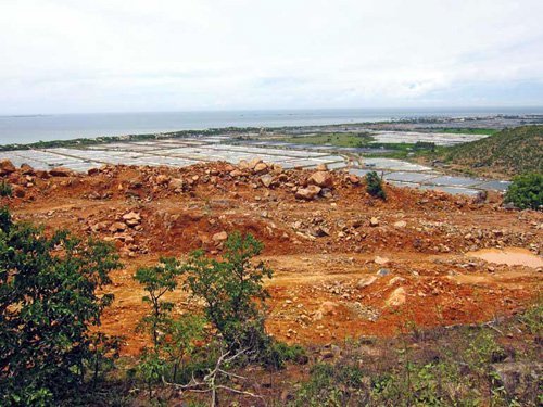 ![]() Những người bảo vệ khu vực này có súng và rất hung hăng, họ đi tuần nhiều lần trong ngày để không cho người lạ xâm nhập vào khu vực thăm dò. Thời điểm tháng 7, mọi hoạt động thăm dò ngưng lại. Tại hiện trường còn một máy phát điện, 50 ống sắt và một máy xúc. ![]() Căn lều dành cho những người thăm dò trú. Một chiếc xe mang biển số khác tỉnh Bình Thuận dùng để vận chuyển nước và các thứ cần thiết khác từ dưới núi lên. ![]() Bản đồ không ảnh về vị trí núi Tàu nằm giữa quốc lộ 1 và biển, đối diện nhà máy Vĩnh Hảo. Chiều dài khu vực thăm dò chừng một cây số và chiều rộng 20m hướng về phía biển. ![]() Nhiều hố thăm dò đào xuống độ sâu, ước tính bằng mắt thường, khoảng 5m. ![]() Có những hố thăm dò sát chân núi phía biển. ![]() Người dân địa phương phải giả làm người chăn bò để lên núi, nhưng có đến 7 bảo vệ ra chặn lại không cho vào khu vực. Nhờ khu vực đồi núi mấp mô dễ ẩn nấp nên phóng viên thâm nhập vào gần sát hiện trường... ![]() Từ núi Tàu nhìn thấy biển rất rõ, cách một vùng ruộng. Người dân cho hay ngày xưa biển ăn vào sát chân núi. ![]() |