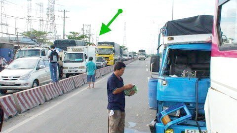 Sự cố xảy ra quá đột ngột khiến xe 52 chỗ 51LD-4496 của công ty Pou Yen đưa rước công nhân (CN) lưu thông phía sau không thắng kịp, tông thẳng vào đuôi xe anh Bi.