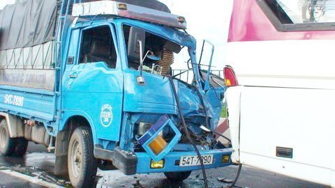 Rất may trên xe có đông công nhân trên đường đến cơ quan làm việc nhưng không có thiệt hại nào xảy ra. Chiếc xe tải gây ra tai nạn bị hư hỏng khá nặng.