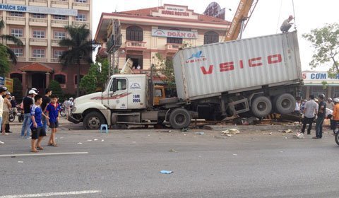 Vào thời điểm trên, xe container 16M - 0904 do tài xế Trần Nguyên Giáp (29 tuổi,
