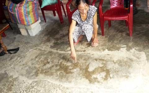 Bà Thanh chỉ tay lên dấu vết cái huyệt trước đây ông chồng vũ phu đào giữa nhà đòi chôn sống mình