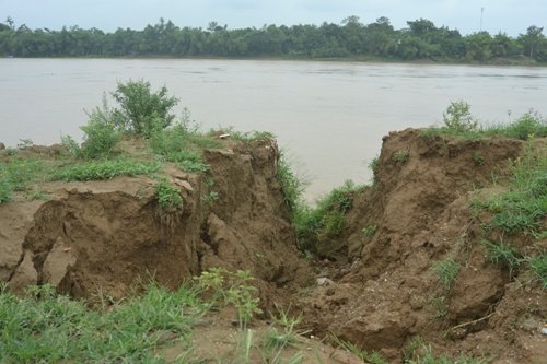 | Chỉ loáng sau một đêm bị “khoắng” trộm, đất bờ sông lại lở ra trông thấy. |