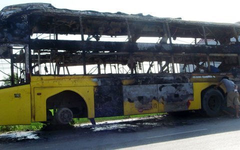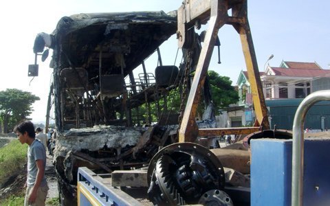 Khi lực lượng chức năng có mặt thì chiếc xe khách đã bị cháy rụi chỉ còn trơ bộ khung sắt. Tài xế (quê huyện Nam Đàn) bị bỏng nhẹ và được sơ cứu.