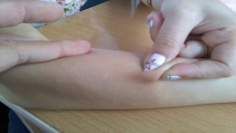 Chị Cúc đi khám vì xuất hiện nhiều nốt rải rác dưới da vùng cổ và hai cẳng tay như hột đậu xanh.