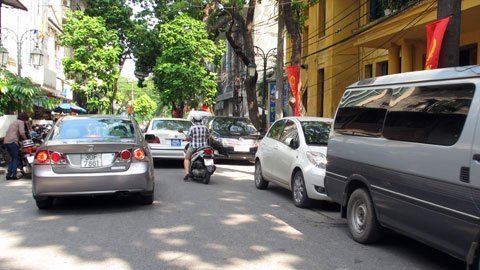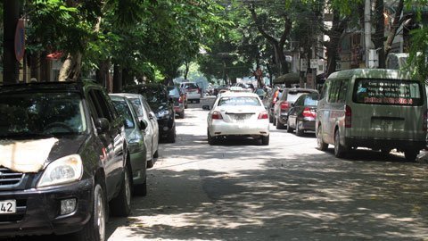 ![]() Đường Hồ Xuân Hương cả hai bên đường xe ô tô đỗ chật cứng chiếm gần hết diện tích lòng đường. |