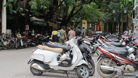 | Tại phố Đoàn Trần Nghiệp, 2 bên đường ô tô và xe máy cũng đỗ chật cứng. |