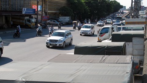 ![]() ![]() Phố Trần Quang Khải toàn bộ vỉa hè đã trở thành bãi đỗ xe tải, xe con ngày và đêm. |