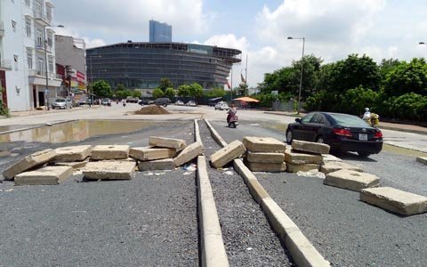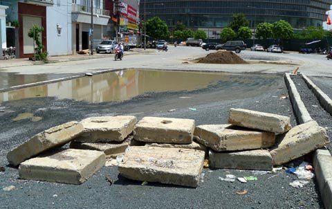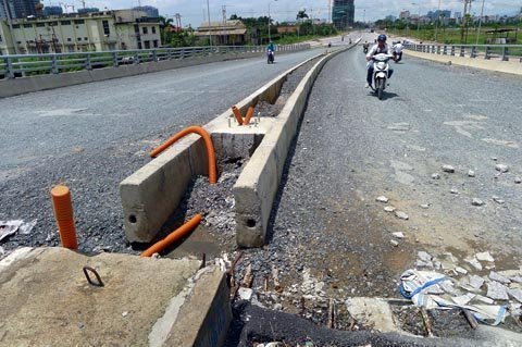 Cây cầu vượt đầu đại lộ Thăng Long nhìn từ phía dưới ai cũng nghĩ đã hoàn thiện![]() Hai đầu cầu biển báo cũng đã được cắm ![]() Không kể ngày mưa hay nắng, những hố voi tạo thành chiếc ao nước trên cầu ![]() ![]() ![]() Những tấm bê – tông vẫn ngổn ngang trên đường ![]() Hệ thống dây điện chiếu sáng bừa bãi trên cầu ![]() Cỏ mọc um tùm ![]() Sắt nối 2 nhịp cầu rỉ sét ![]() ![]() Người dân vất vả “bò” qua những mối nối trên cầu ![]() Hai đầu cầu là 2 ao nước ít khi… cạn |