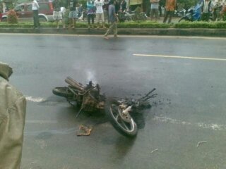 | Chiếc xe mô tô bị Đông đốt cháy rụi |