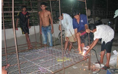 Đến ngày hôm sau, anh Sanh gọi người đến dùng thép B40 đóng thành một cái lồng sắt to và nhốt con trăn gấm vào trong.