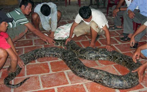 | Con trăn gấm nặng 79kg, dài hơn 6m. |