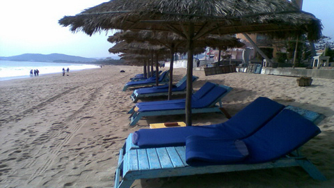 Cũng trong sáng mồng 4, biển Nha Trang nơi hấp dẫn nhiều du khách đã vô cùng vắng lặng. Trên bãi biển một vài người đứng dưới mé nước vui đùa với sóng biển. Hàng quán vắng ngắt. Những lều trốn nắng với những chiếc ghế bố nằm chơ vơ hiu quạnh.