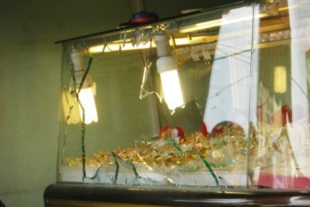 | Dùng búa đập bể tủ kính, tên cướp đã lấy đi 3 sợi dây chuyển vàng… |