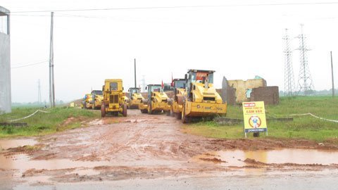 | Hàng trăm thiết bị máy móc phục vụ thi công công trình đường cao tốc Hà Nội Lào Cai nằm đắp chiếu vì bị dân ngăn cản thi công. |