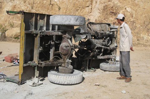 Sau lễ an táng cụ cố Huỳnh Đô (ở xã An Phú, TP.Tuy Hòa) tại nghĩa trang Thọ Vức, chiếc công nông do anh Lưu Hùng Tấn (30 tuổi, trú cùng thôn) điều khiển bất ngờ đứt phanh trong lúc đổ dốc.