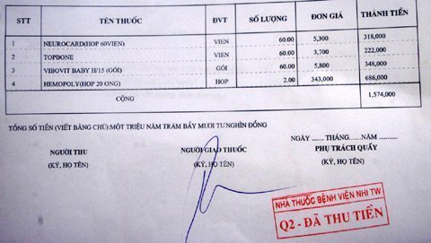 | Đơn thuốc trên 1,5 triệu đồng tại BV Nhi TW |