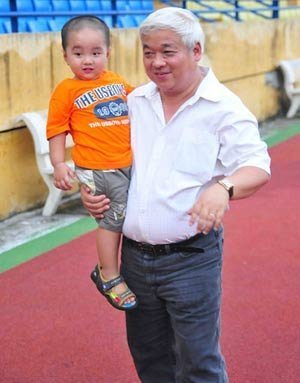 | Hình ảnh hiếm khi bầu Kiên xuất hiện cùng con trai trên sân - (Ảnh: Ngôi sao) |