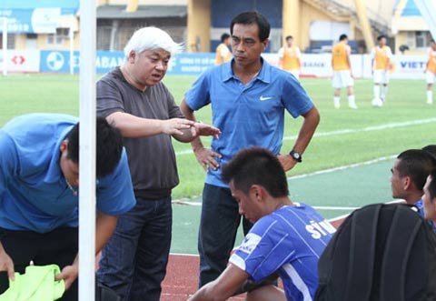 | Bầu Kiên xuống tận sân chỉ đạo các cầu thủ - (Ảnh: 24h) |