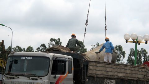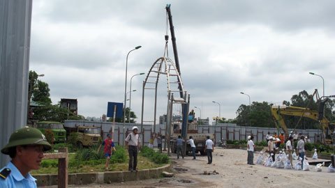 Hàng chục ô tô, máy xúc, máy cẩu đã được huy động để tiến hành đưa ống cống từ dưới hố lên. Công tác nạo vét cũng được tiến hành để chuẩn bị cho việc san nền. Hàng trăm công nhân cho cát vào bì để đắp bờ vây xung quanh.